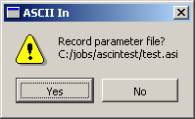 Loads previously recorded ASCII IN (.asi) parameter file. Records current translation parameters to a ASCII IN (.asi) parameter file. Allows all ASCII input files to be selected. Also allows a VrOne output file to be defined for each input file. Looks for files with an extension of .asc by default, but will attempt to read in any file chosen. The VrOne output filenames will only be used if the "Translate to separate VrOne files" option is on.
